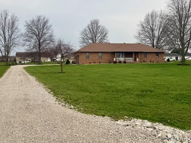 Welcome to this beautifully maintained full-brick ranch nestled on a peaceful 2.43-acre country setting just outside Breese. Offering 3 bedrooms and 2-1/2 bathrooms, this home combines quality construction and functional design. The spacious kitchen has an abundance of cabinetry, a breakfast bar, pantry, SS appliances, and stunning granite countertops. The 3 bedrooms are spacious, and all are located on the main level, with the primary bedroom offering a private bathroom. A standout feature is the enclosed sunroom with a gas fireplace which offers a peaceful space for year-round enjoyment. The main-floor laundry with a convenient 1/2 bath adds everyday practicality. There is also an attic fan and a central vacuum system. If you need room to expand, the full, unfinished basement is waiting for your personal touches! Step outside and enjoy the large patio, beautiful landscaping, and expansive yard offering endless opportunities...whether it's gardening, outdoor entertaining, or simply enjoying the privacy and space that's hard to find in Clinton County. Don't miss out on this gem!