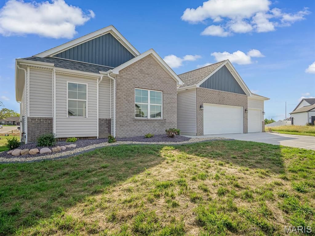 New Construction in the Highly Sought-After O'Fallon School District! This ranch home offers two oversized guest bedrooms in addition to a spacious primary en-suite retreat. The open floor plan showcases beautiful LVP flooring throughout all common areas, 5 1/4 baseboards, an upgraded kitchen with granite countertops, 42 soft-close cabinets, stainless appliance package, walk-in pantry, and soft lighting. The primary suite boasts a freestanding tub, marble vanity tops, and a large walk-in closet. Additional features include a private laundry room with sink, open spindle staircase, drop zone with bench and coat hooks, EV charger capability, walkout basement package with rough-in bath, 9' ceilings and basement walls, plus a 3-car garage. Peace of mind is built in with a 1-year builder warranty, 10-year structural warranty, and lifetime basement waterproofing warranty. Situated on a great lot in an amazing location close to schools, shopping, dining, parks, and Scott Air Force Base, this new construction home is move-in ready and designed to impress.